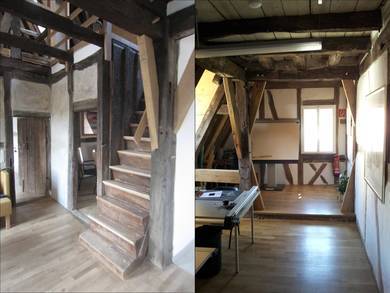 - In ehemaliger Scheune Cateringbetrieb im Erdgeschoss, Büro im Obergeschoss und Maisonettewohnung im Dachgeschoss.