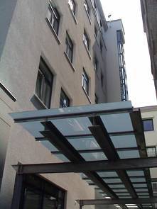 Büro- und Geschäftshaus in der Innenstadt Stuttgarts mit Zugang zum Treppenhaus über die überdachte Passage