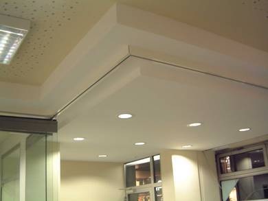 Einbau einer horizontalen Schiebewand in SB-Zone Bankfiliale (2005) in Heilbronn Im Eingangsbereich wurde die bestehende Abtrennung zum Kassenraum demontiert